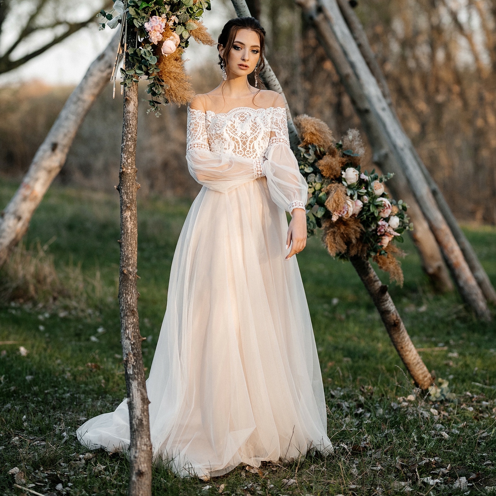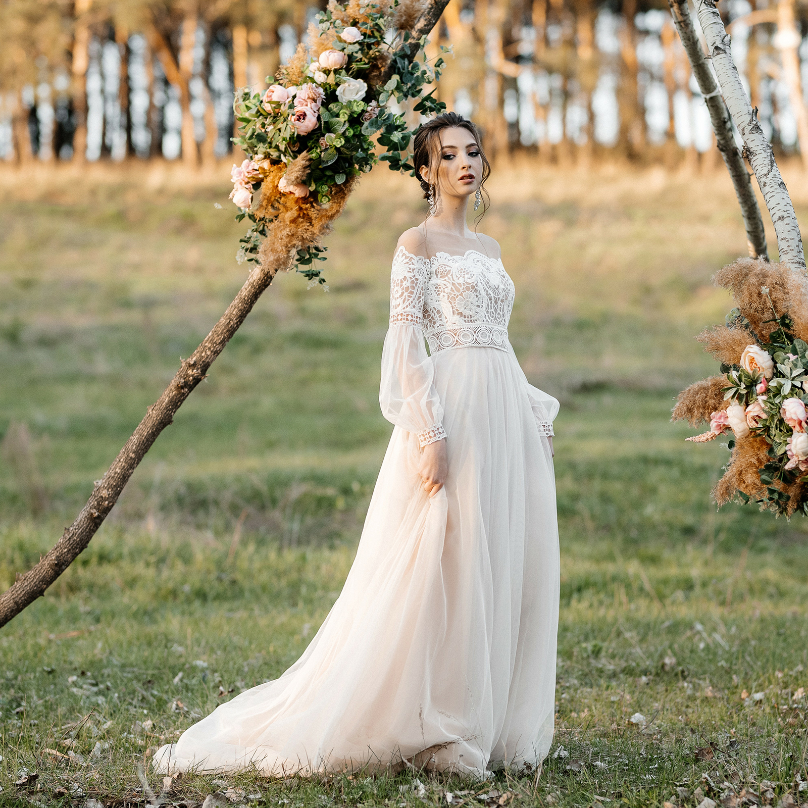 Here you will discover a variety of styles. Take a look a the wedding dresses and style shoots and choose your favorites: Boho wedding dresses, modern vintage dresses, A-line wedding dresses, simple dresses or with lace, modern or classic cuts, figure-hugging, short or long wedding dresses, dresses in luxury look, mermaid or bohemian style, long-sleeved dresses, with train, backless or with V-neck, elegant and natural dresses, plus size or even black wedding dresses you can find for inspiration in our gallery.